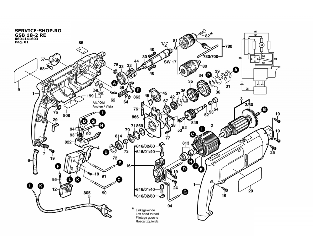 Masina de gaurit cu percutie Bosch GSB 18-2 RE Profesional (0601141603-EU)